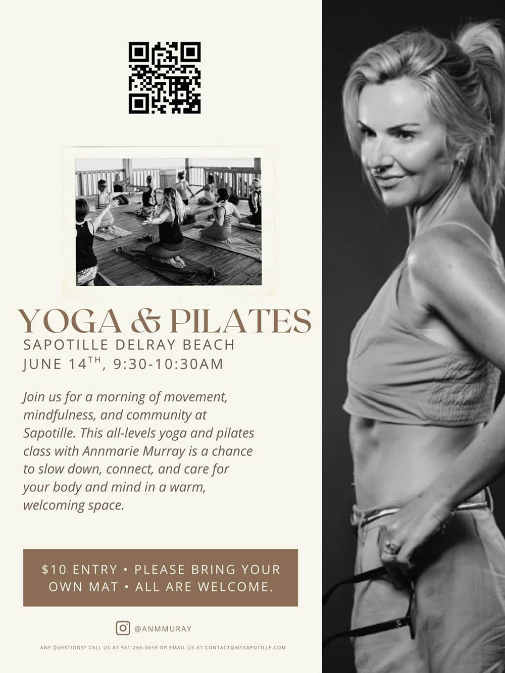 Join us for a morning of movement, mindfulness and community at Sapotille. This all-levels yoga and Pilates class with Annmarie Murray is a change to slow down, connect and care for your body and mind in a warm, welcoming space.